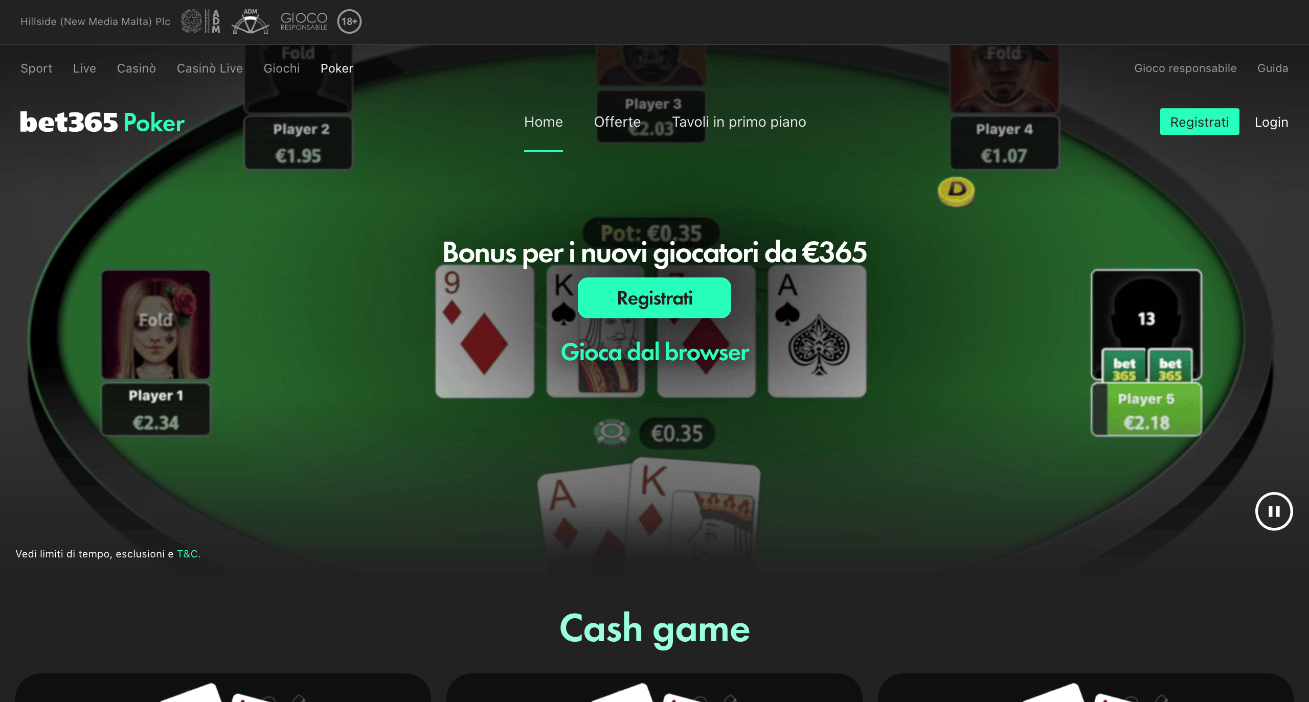Come già accennato precedentemente, bet365 non è solo bookmaker: offre anche i giochi per casinò e una interessante poker room online.