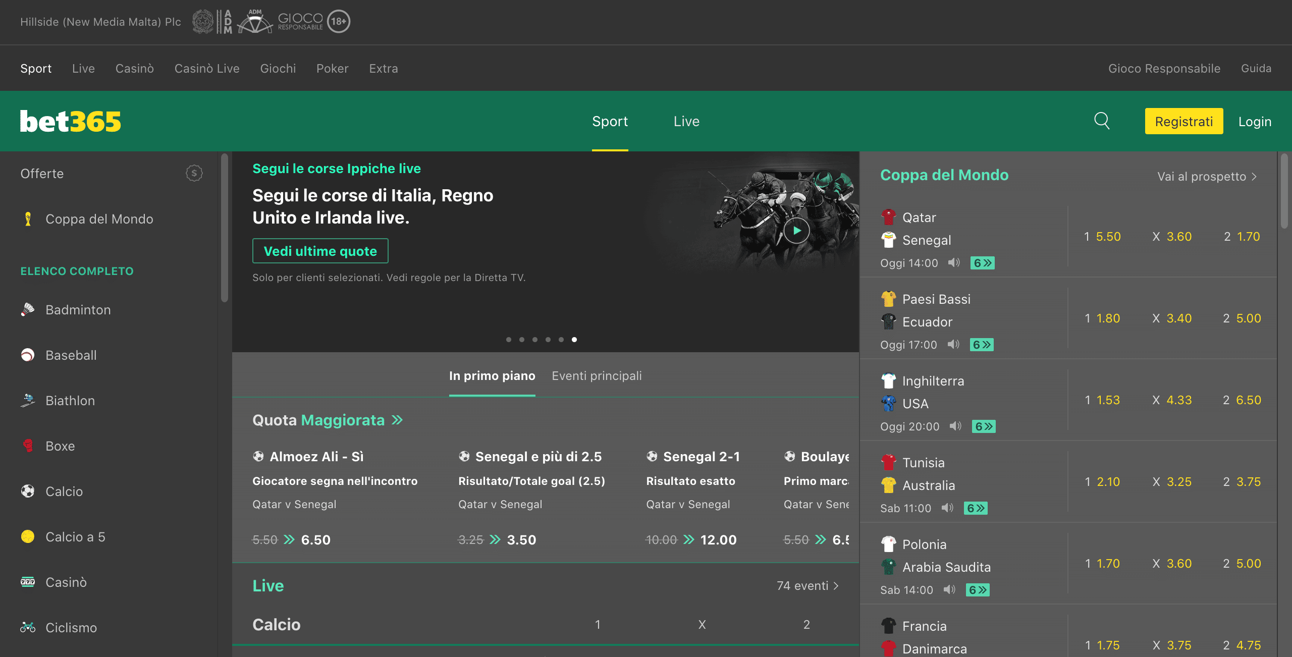 Per gli amanti degli sport alternativi bet365 non delude e il palinsesto offre diverse scelte di sport di ogni tipo arrivando fino a quelli motoristici e agli e-sports.
