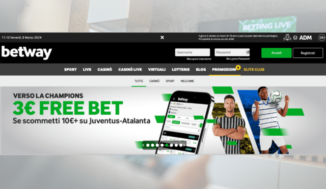 Per l’occasione il bookmaker Betway ha lanciato una promozione che regala una scommessa gratutita di 3€ da utilizzare per scommesse live sulla champions, se scommetti 10€ o più sul match tra Juventus e Atalanta.