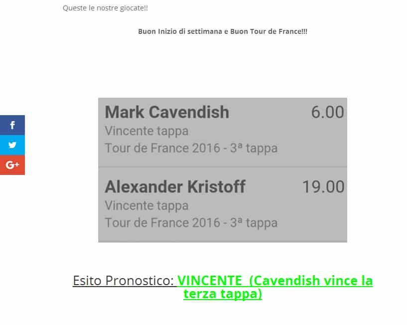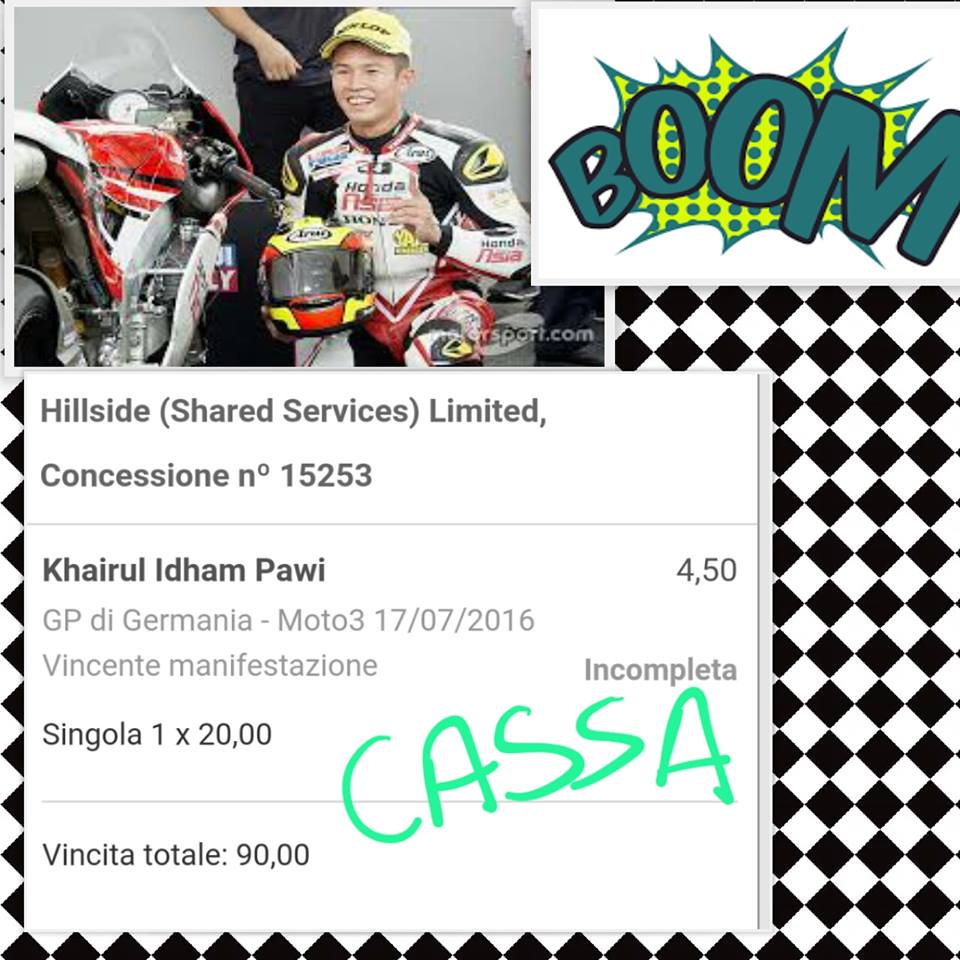 17 Luglio: Cassa a quota 4,50 con la MOTO 3. Pronostico pubblicato sulla nostra pagina facebook ufficiale