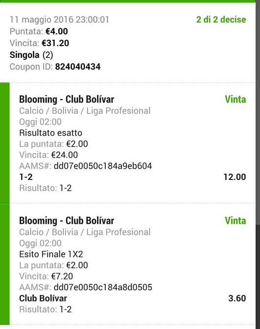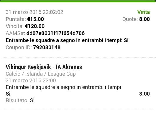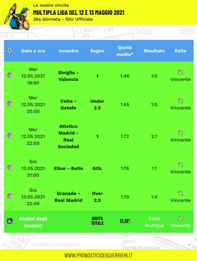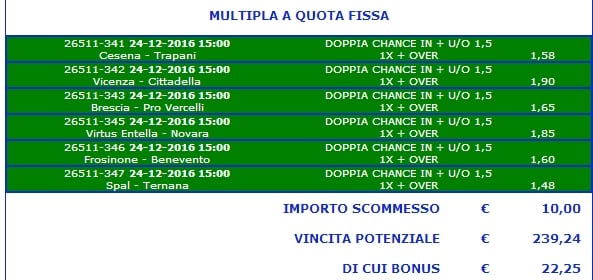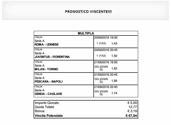 tutte le nostre Scommesse Vincenti
