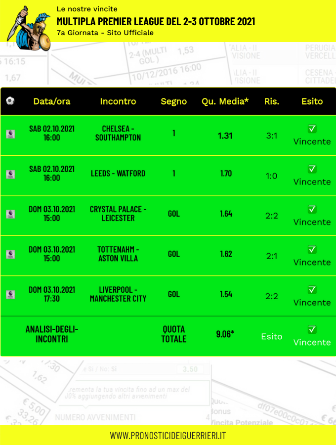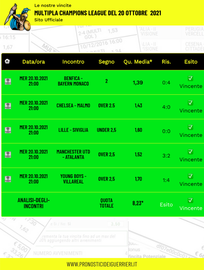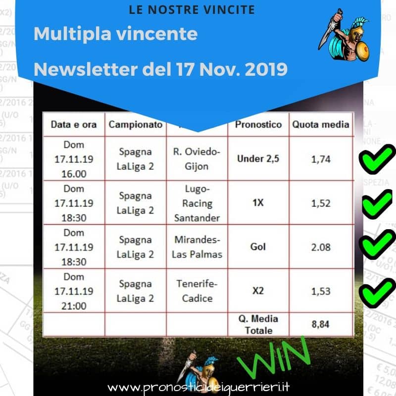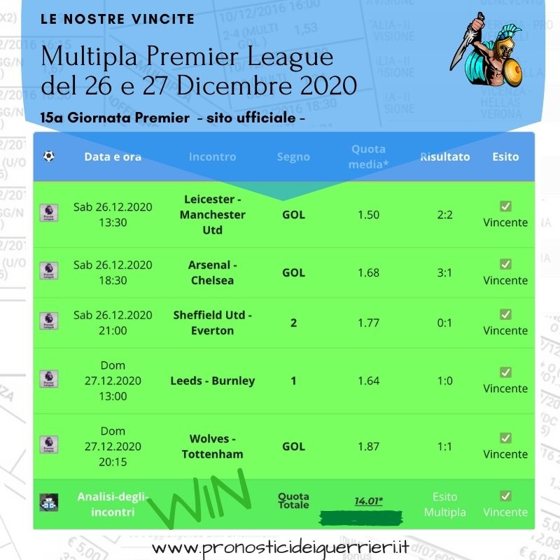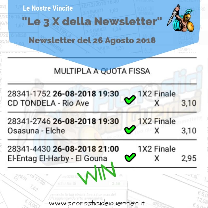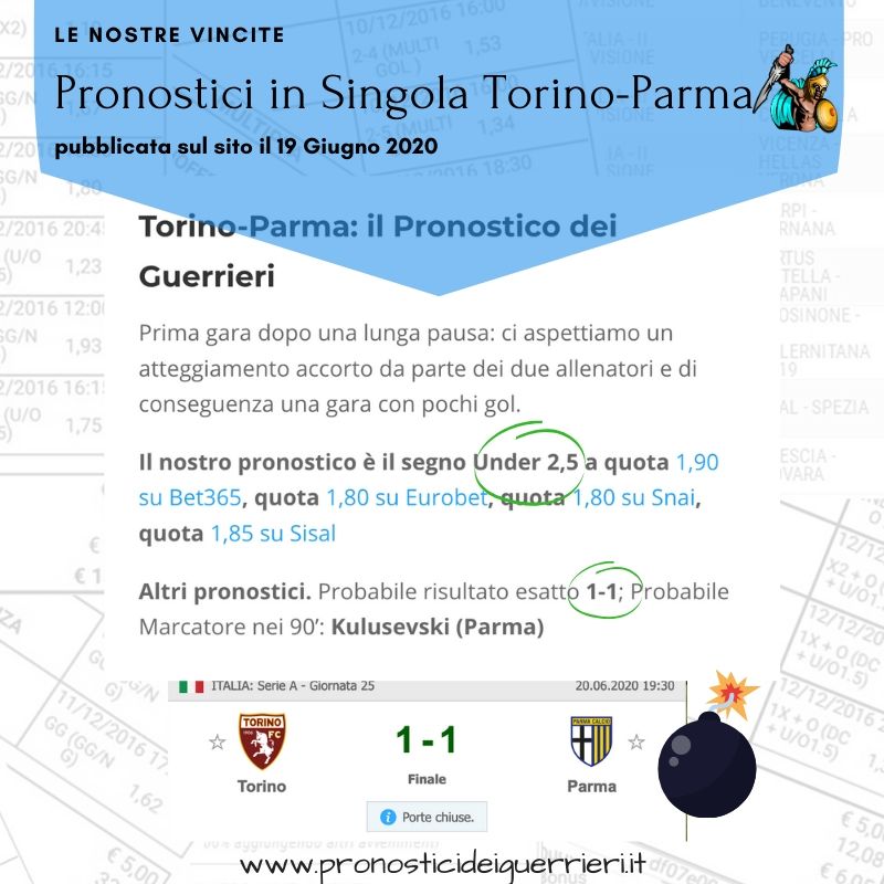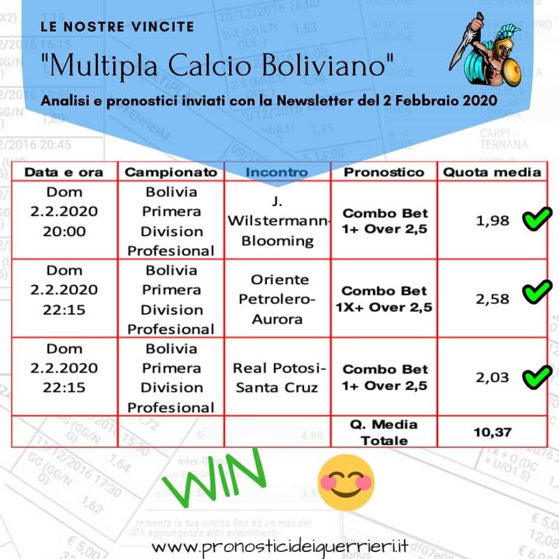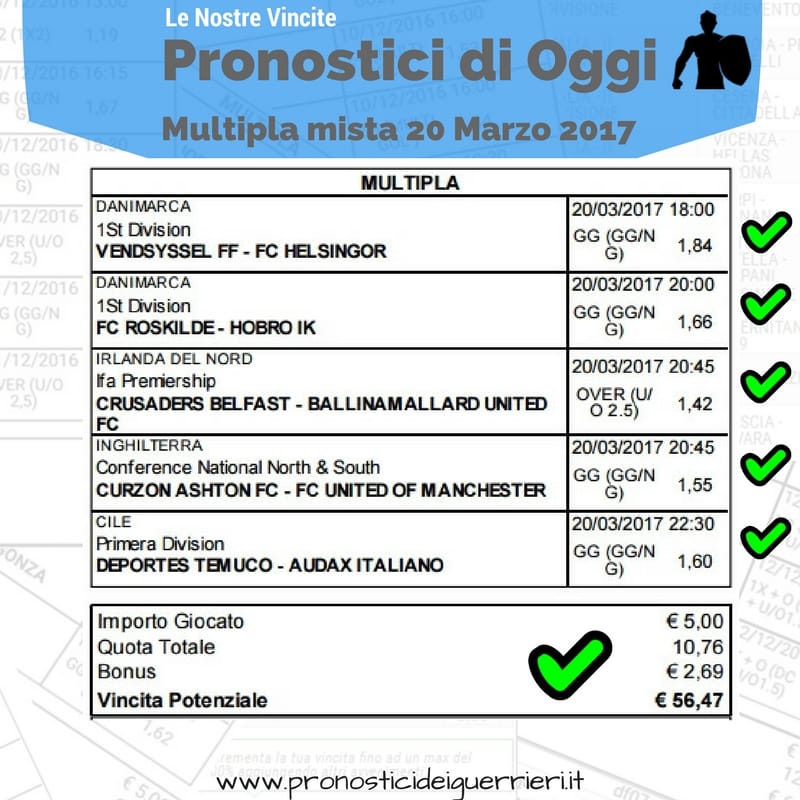 Tutti questi pronostici sono stati condivisi con i membri della nostra Community su questo sito, nel nostro gruppo Facebook, via newsletter o tramite il canale Telegram.