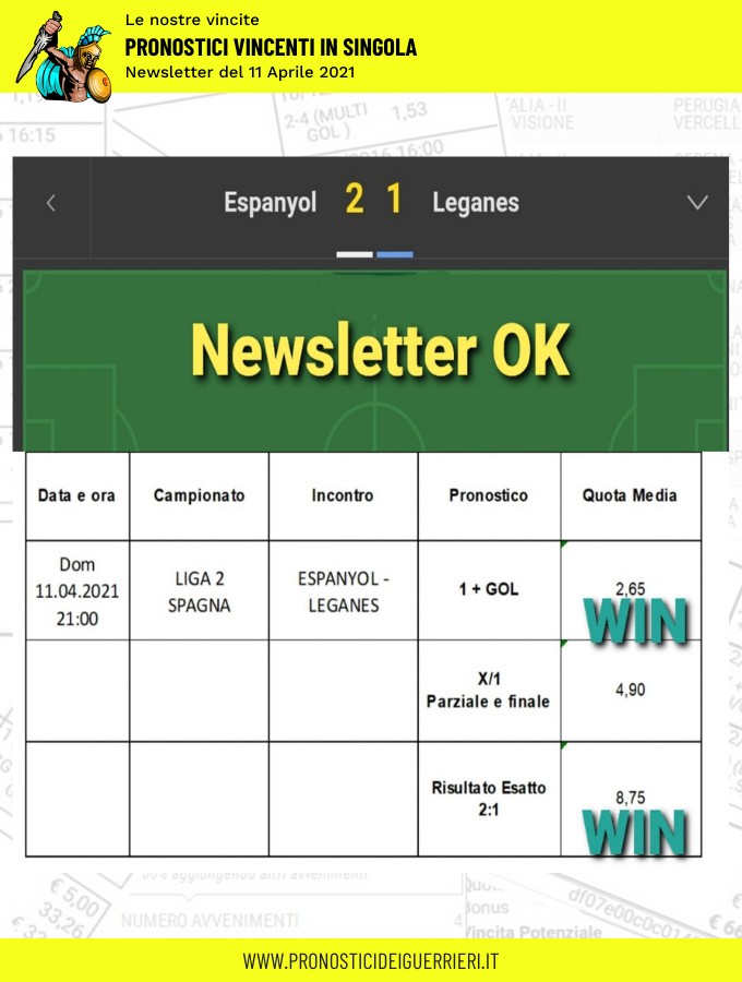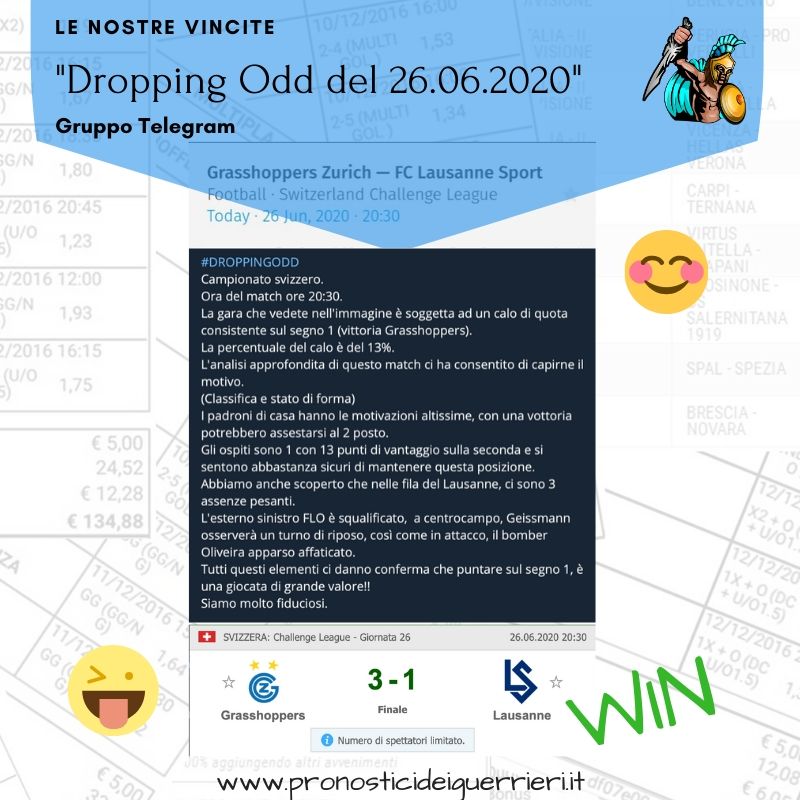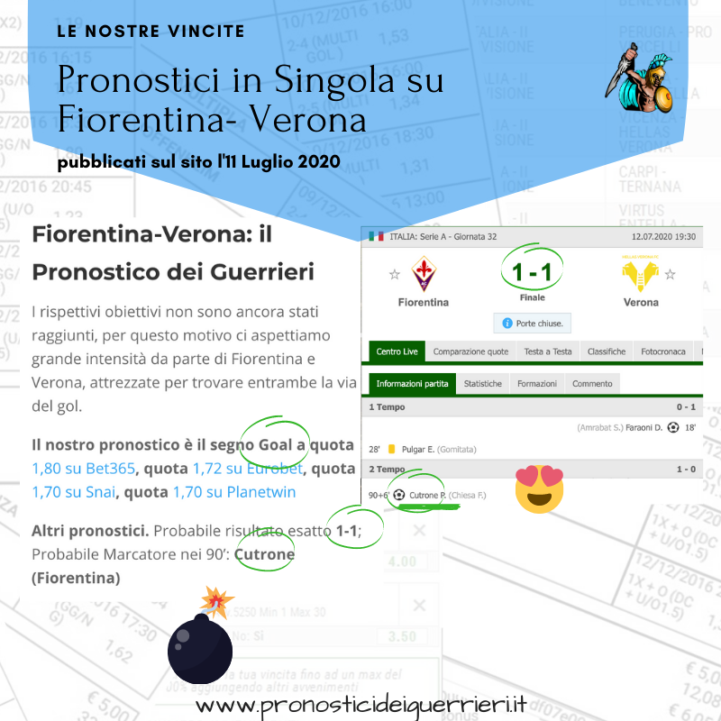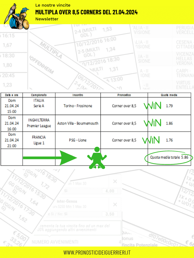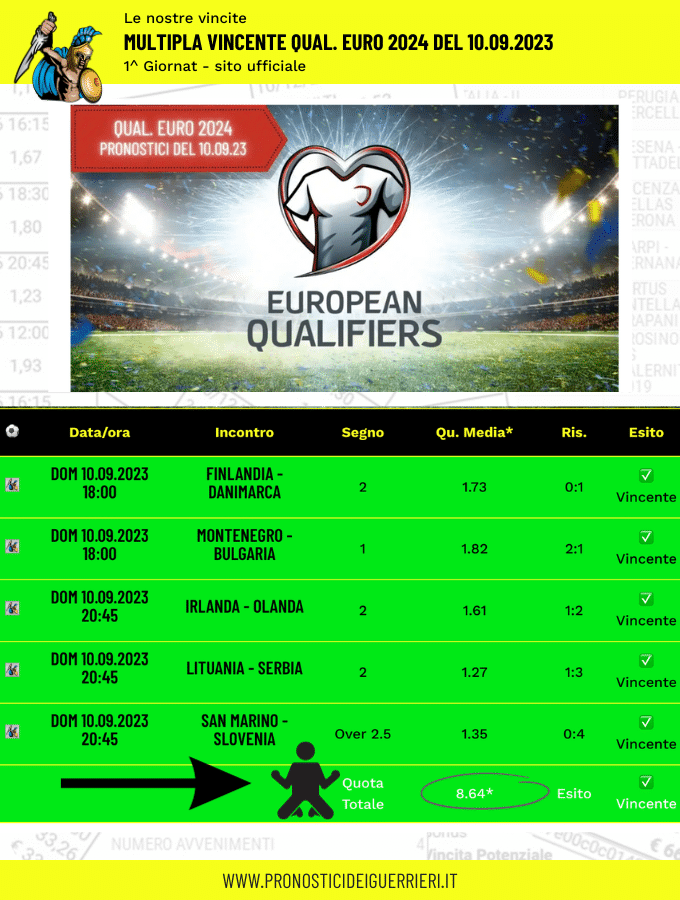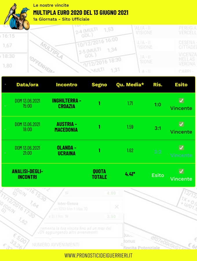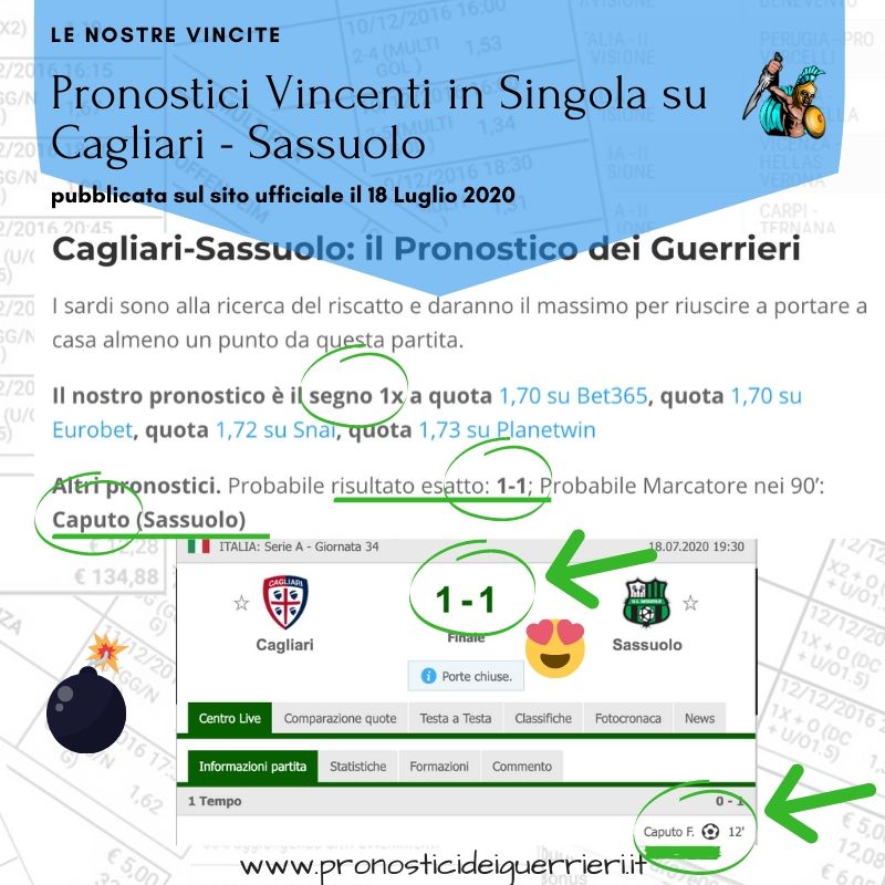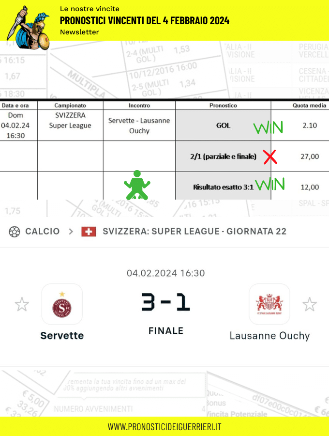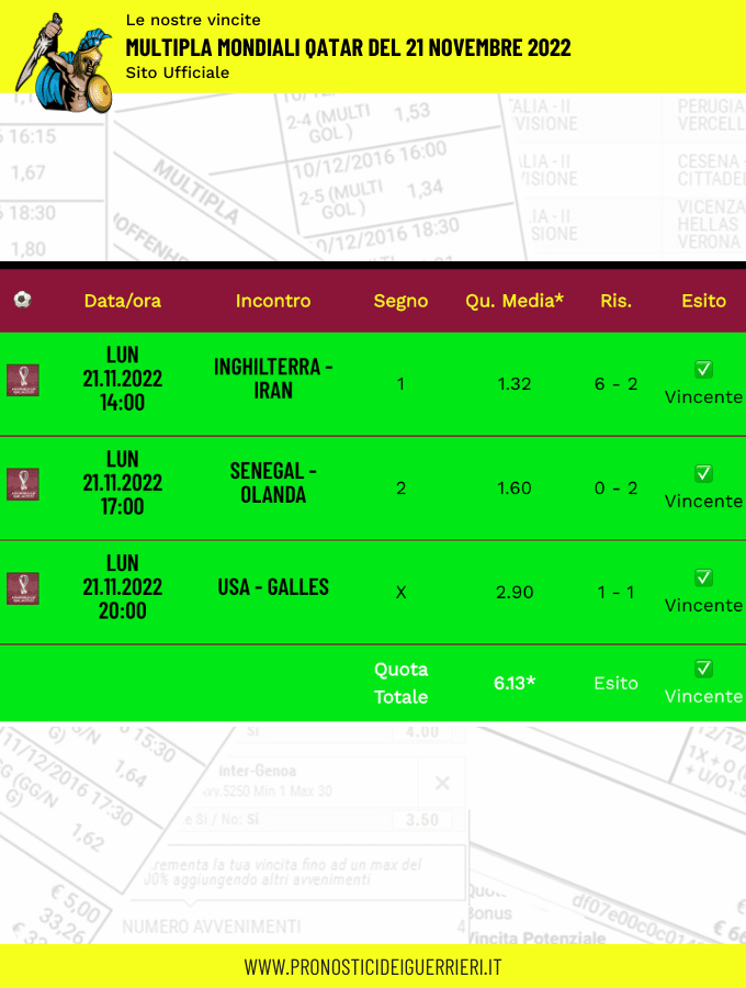Tutti questi pronostici sono stati condivisi con i membri della nostra Community su questo sito, nel nostro gruppo Facebook, via newsletter o tramite il canale Telegram.