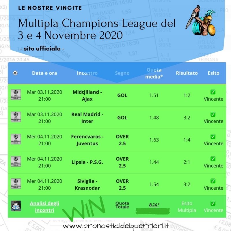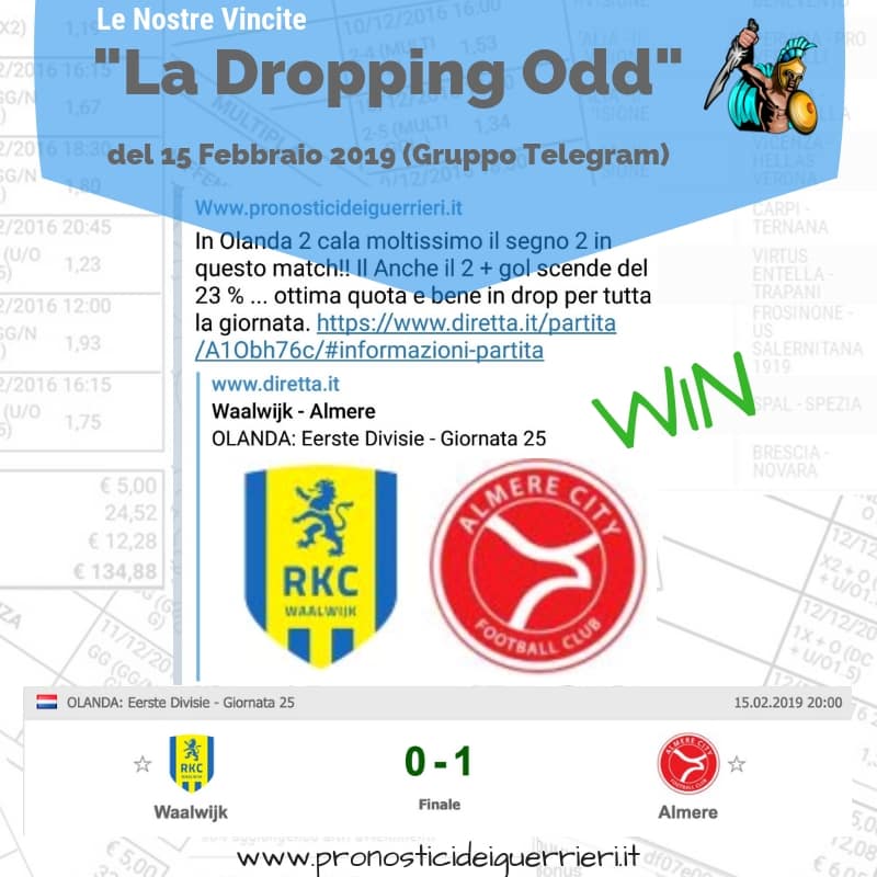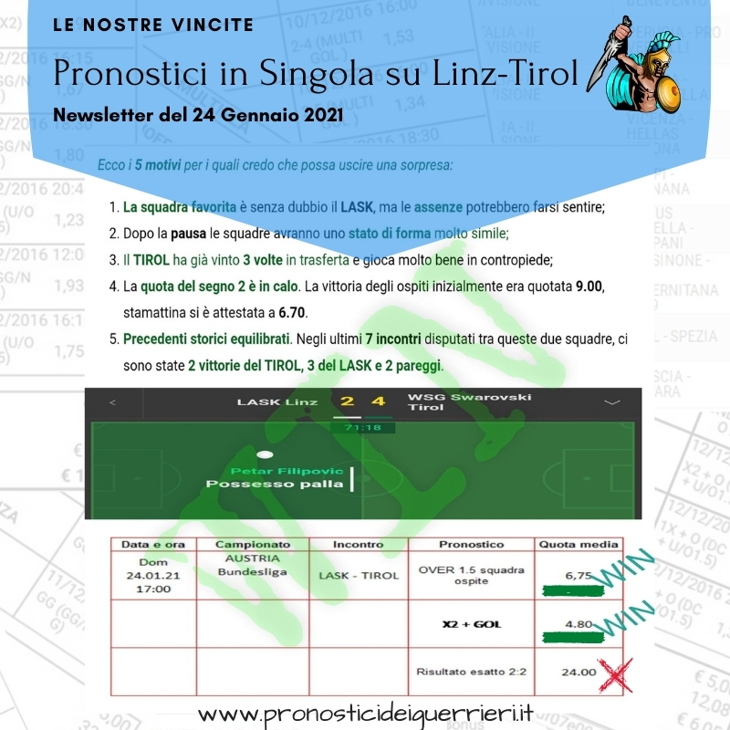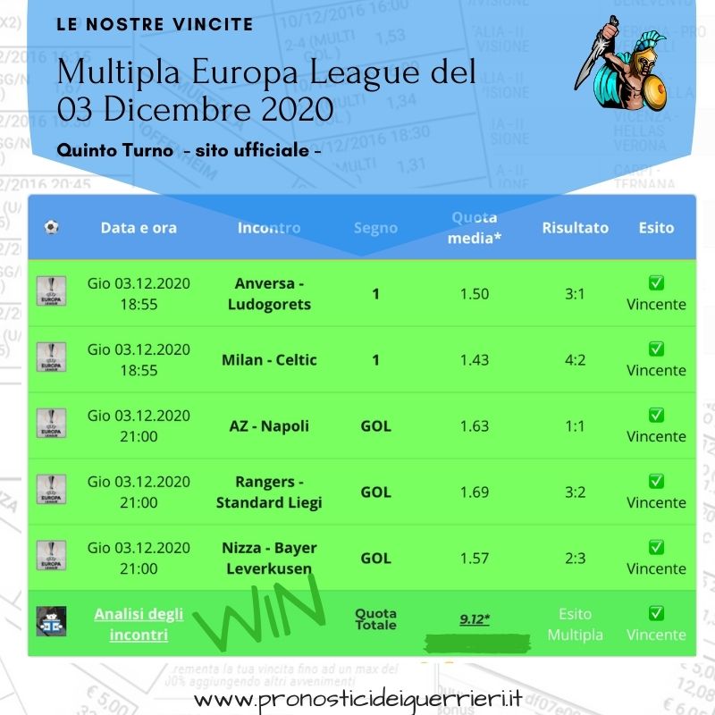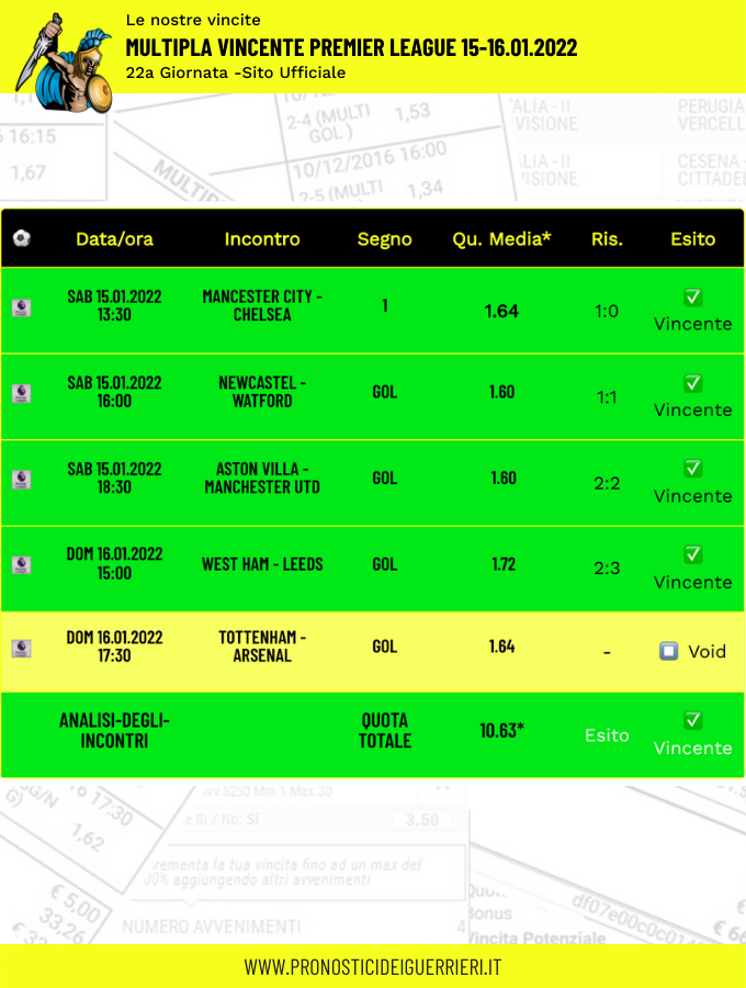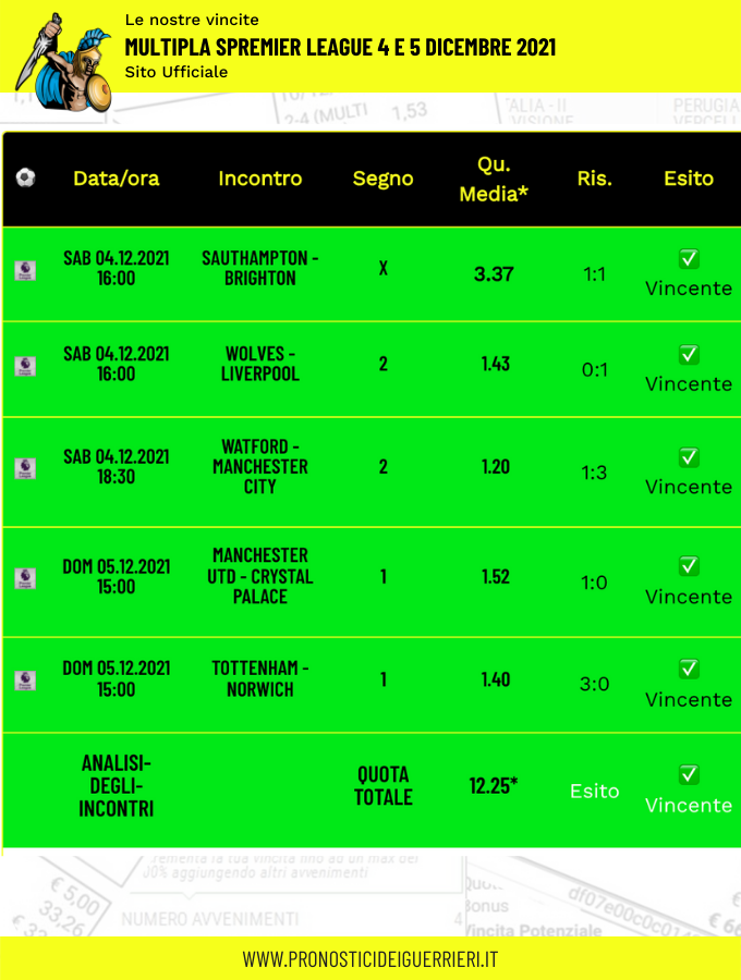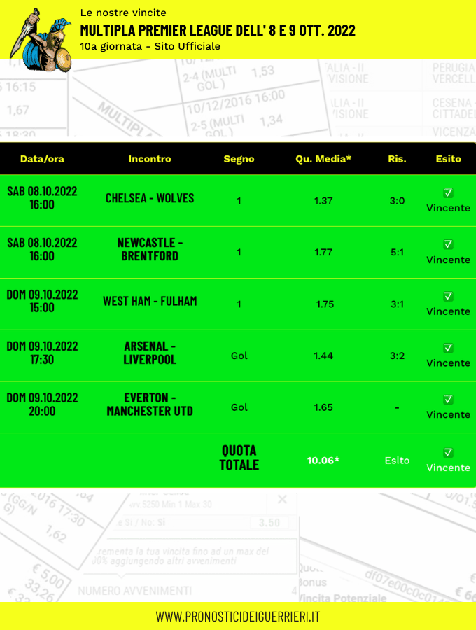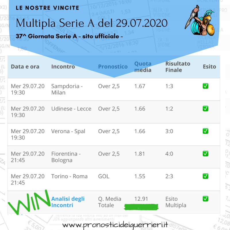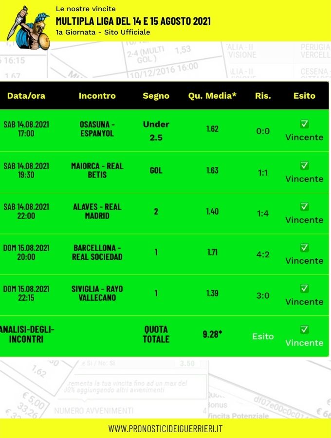 Tutti questi pronostici sono stati condivisi con i membri della nostra Community su questo sito, nel nostro gruppo Facebook, via newsletter o tramite il canale Telegram.