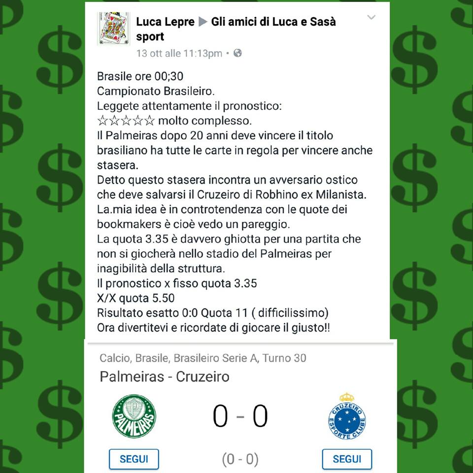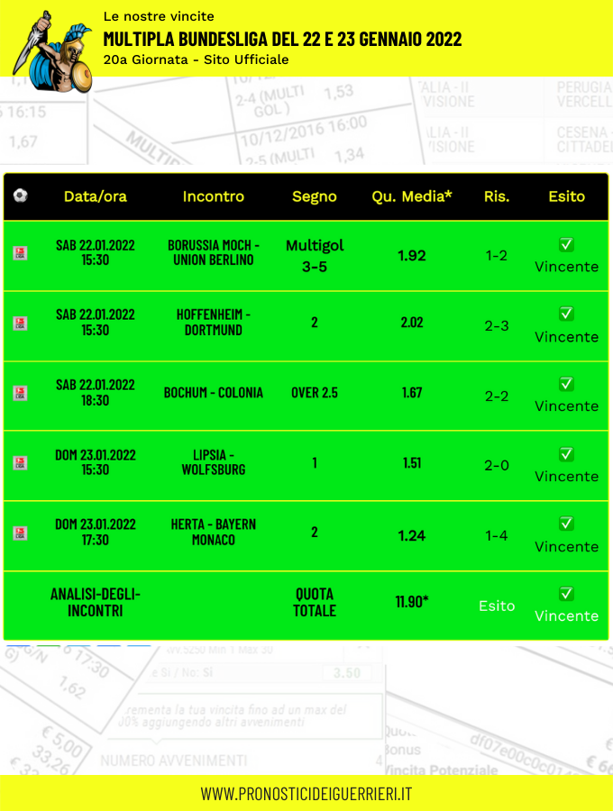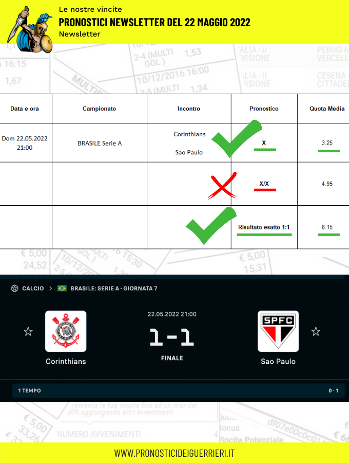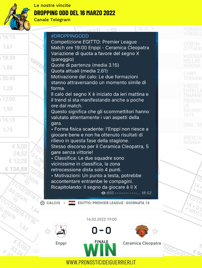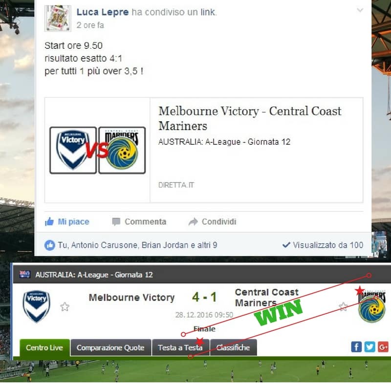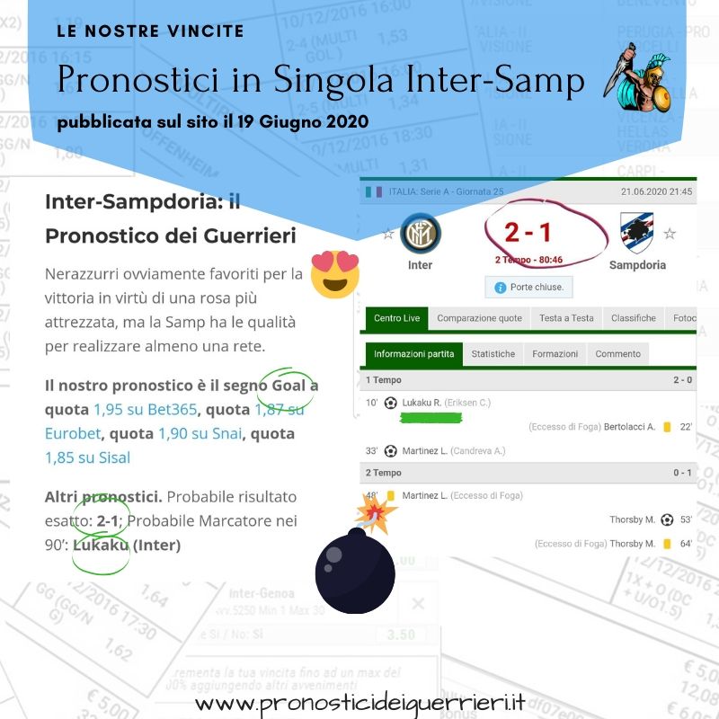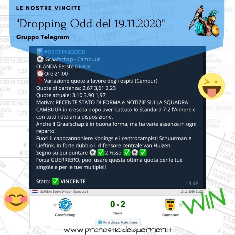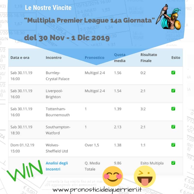 Tutti questi pronostici sono stati condivisi con i membri della nostra Community su questo sito, nel nostro gruppo Facebook, via newsletter o tramite il canale Telegram.