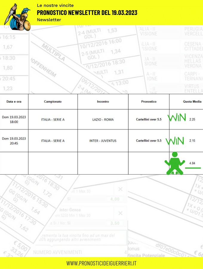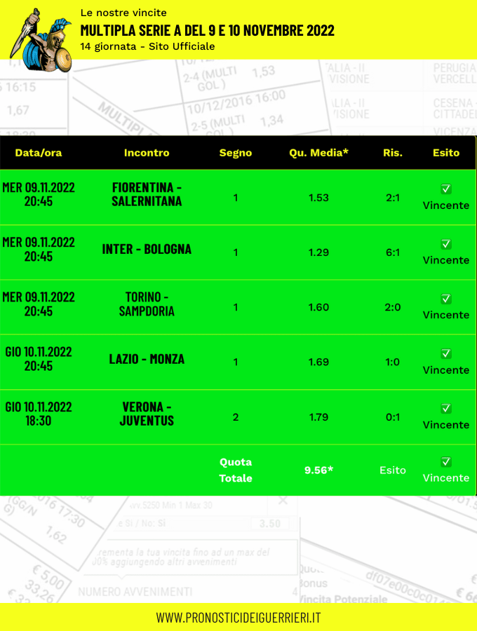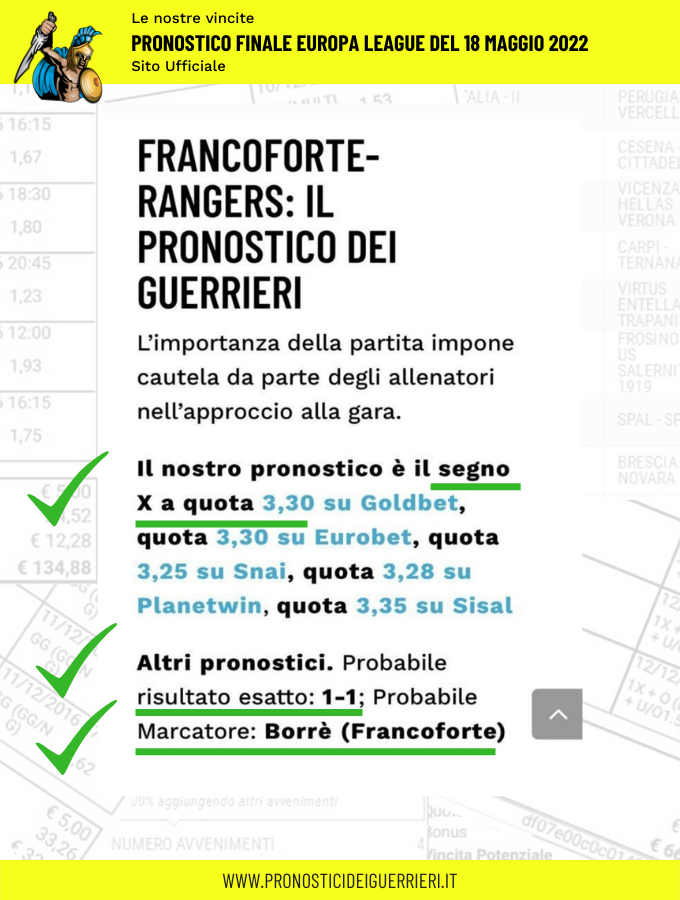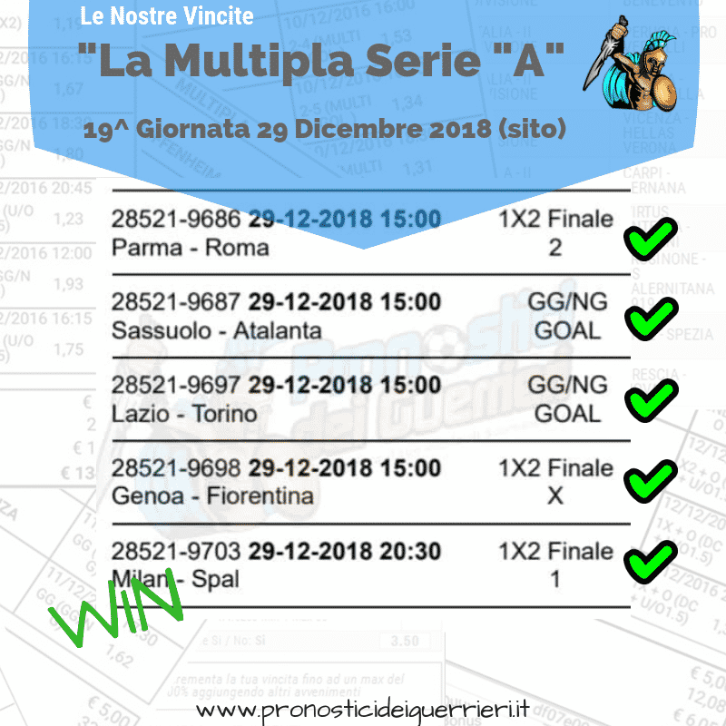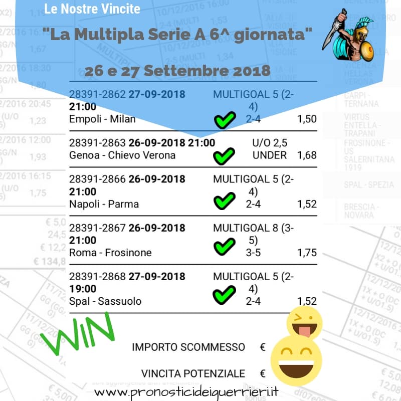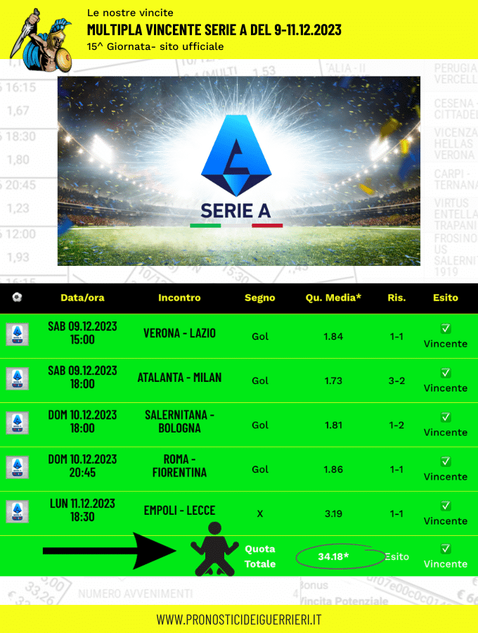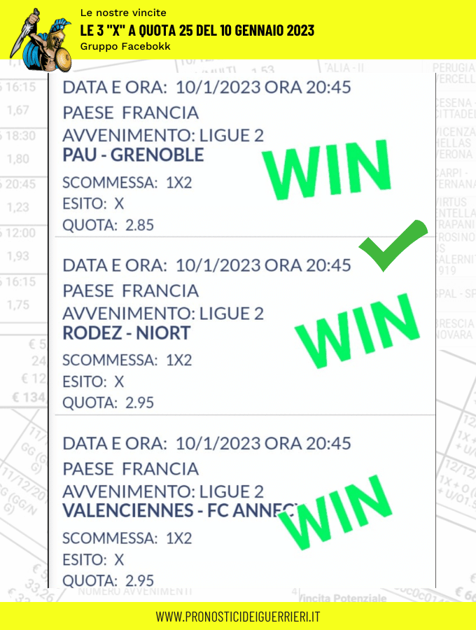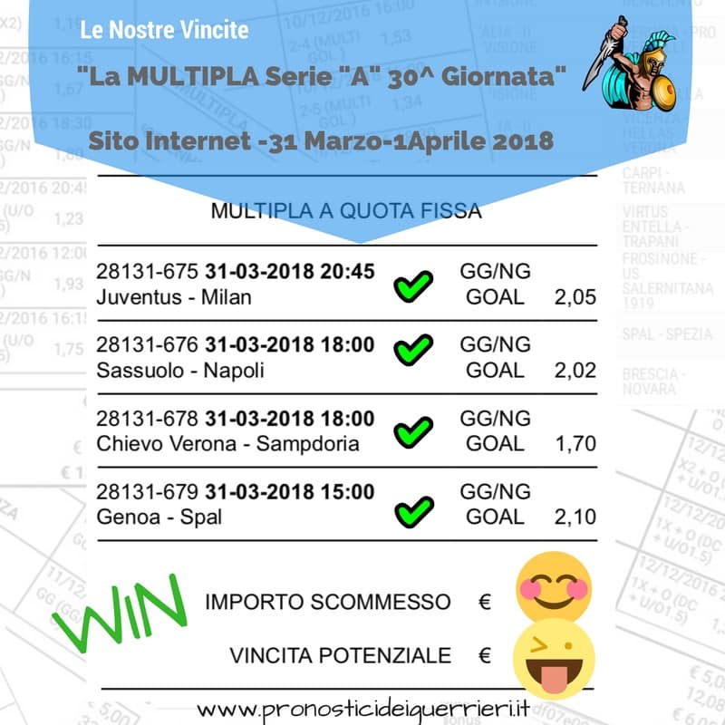 Le immagini che vedi in questa pagina sono l’elenco delle scommesse vincenti dei Guerrieri.