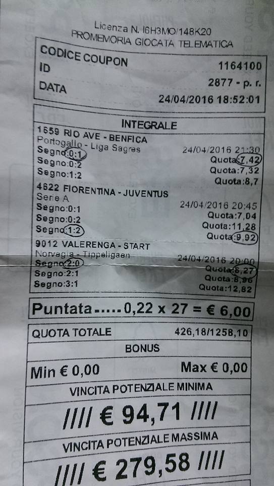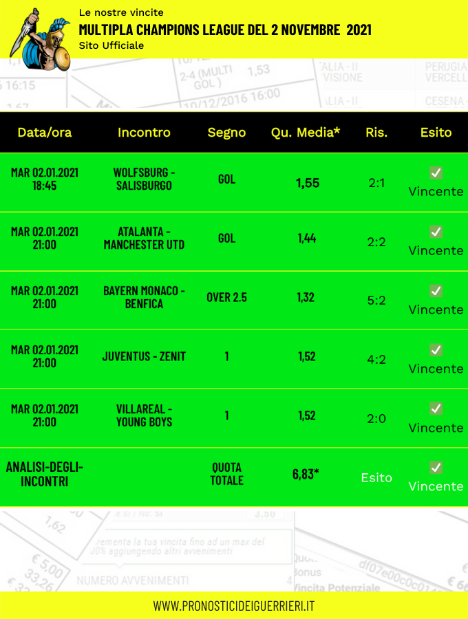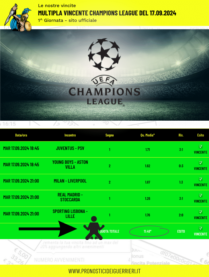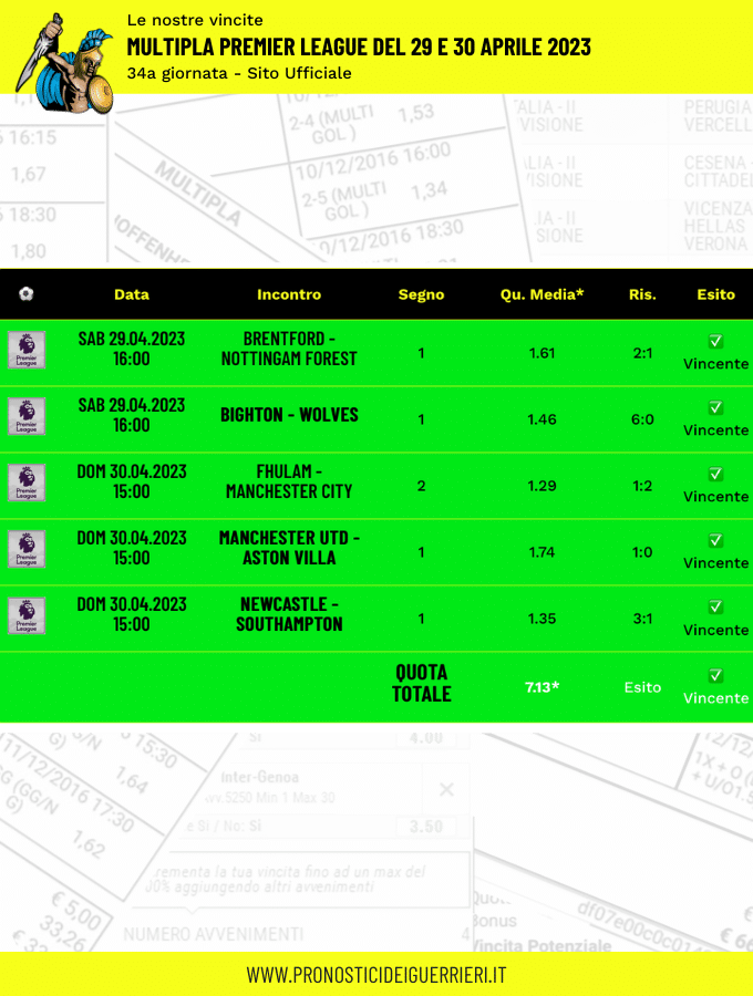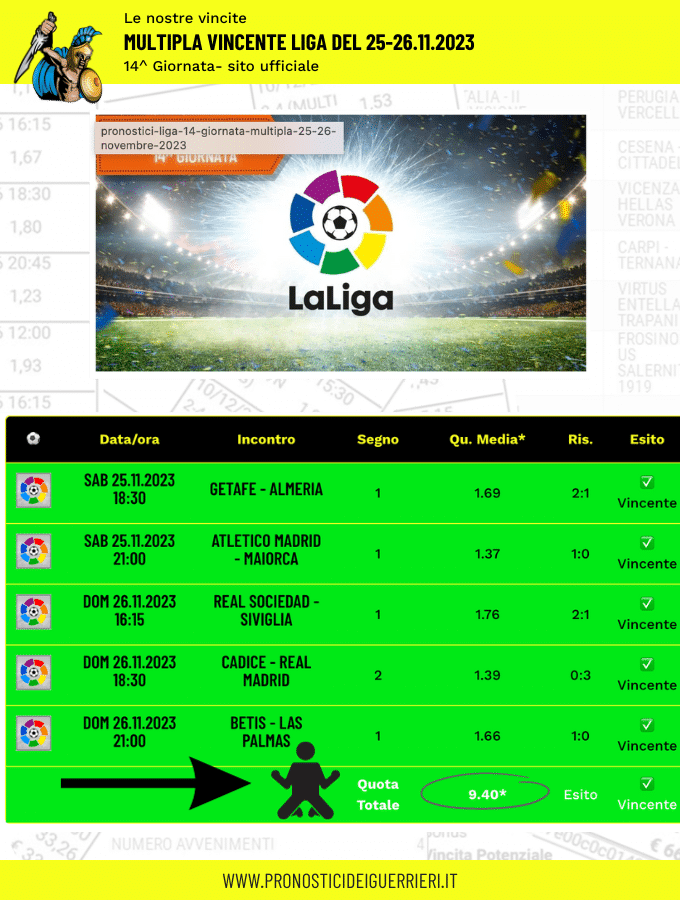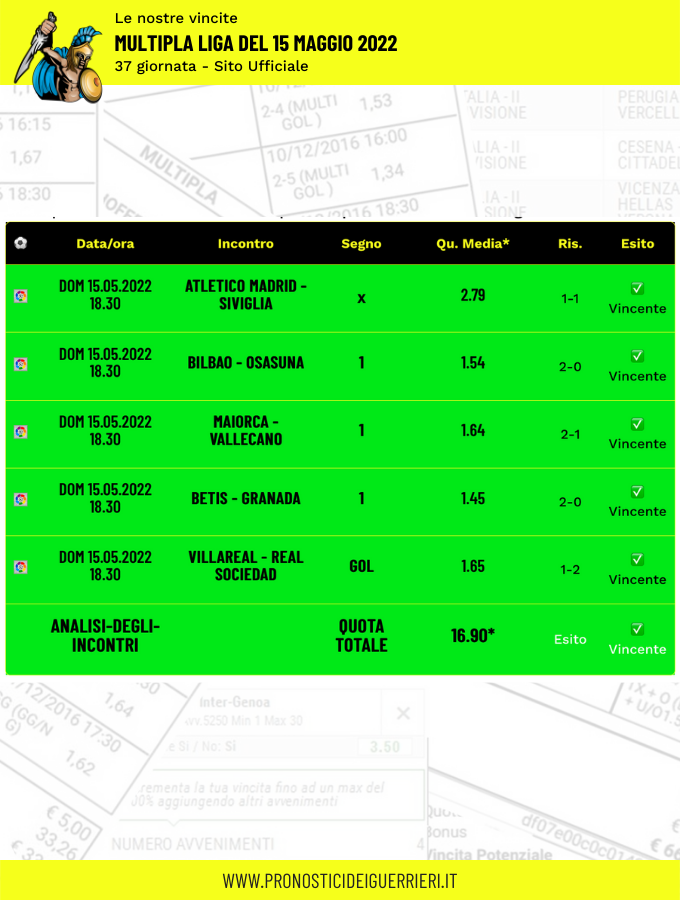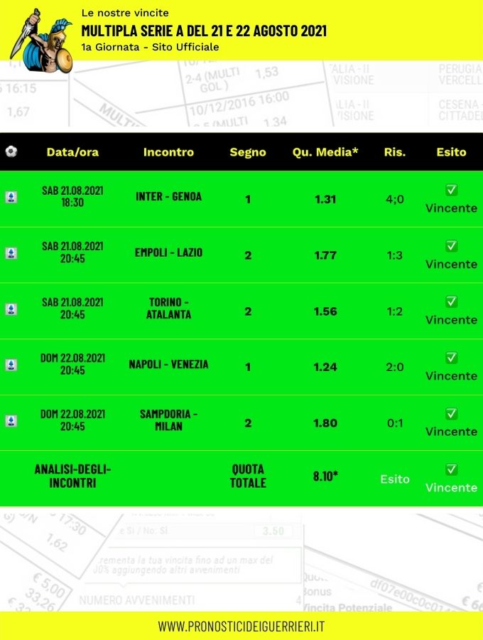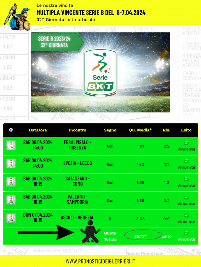 Le immagini che vedi in questa pagina sono l’elenco delle scommesse vincenti dei Guerrieri.