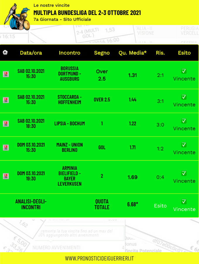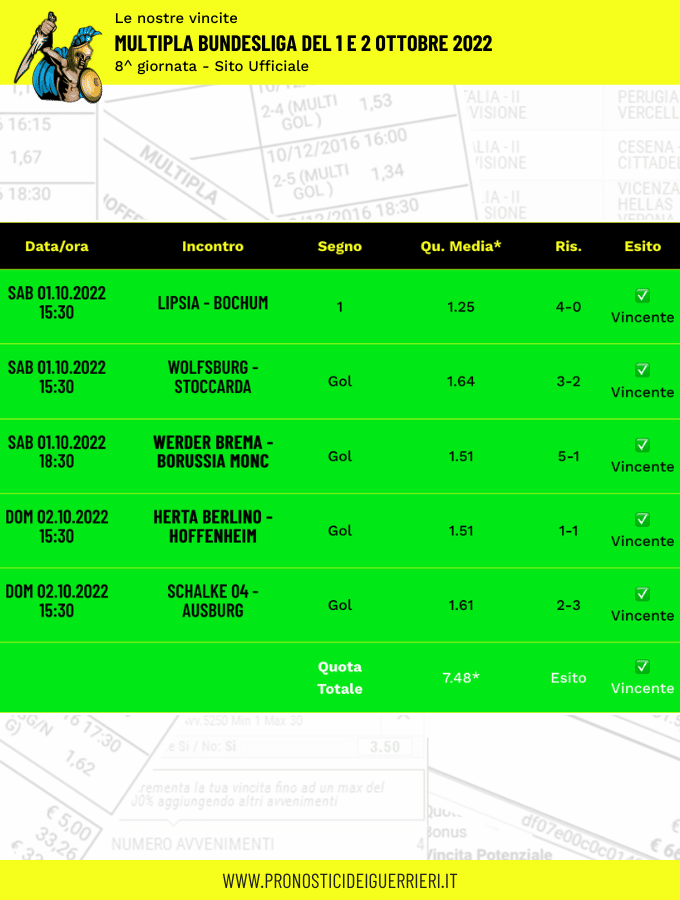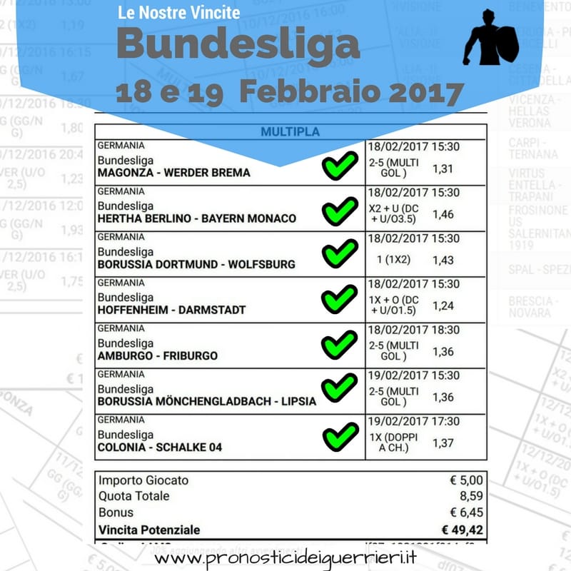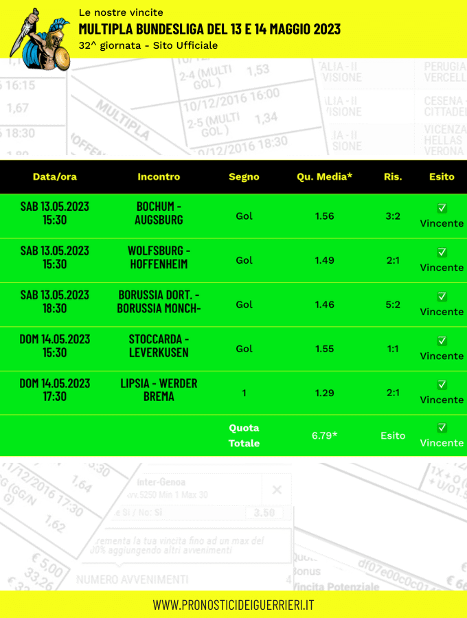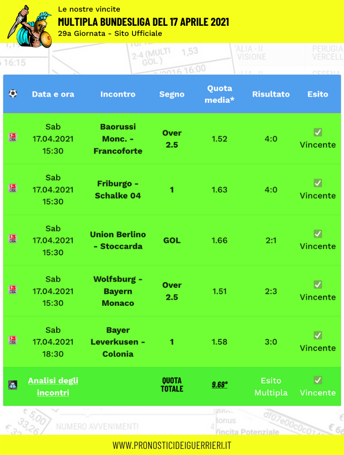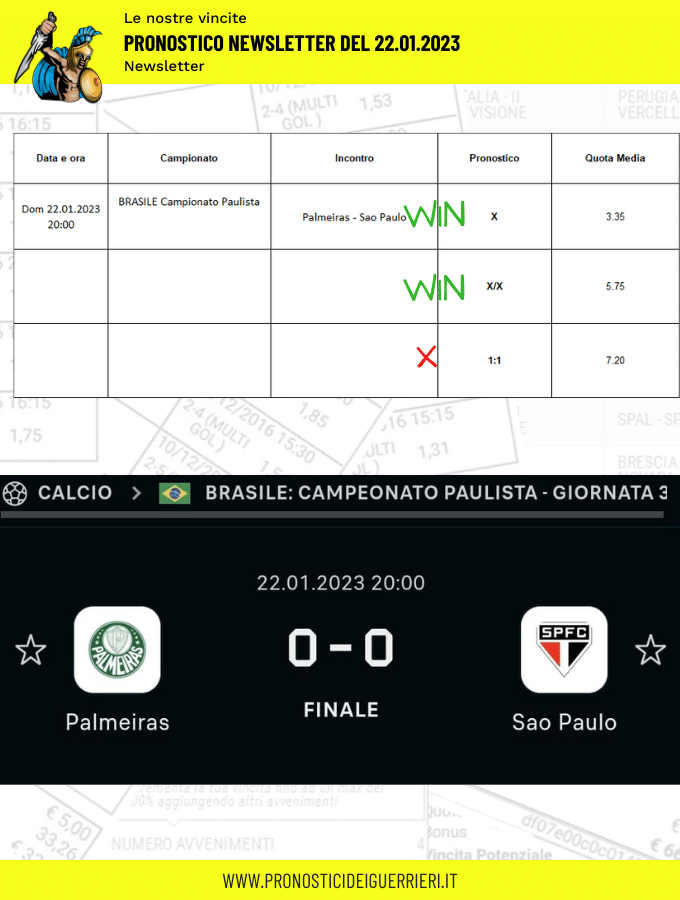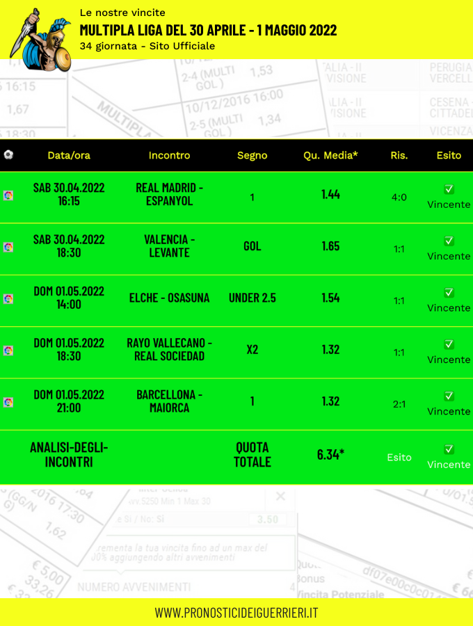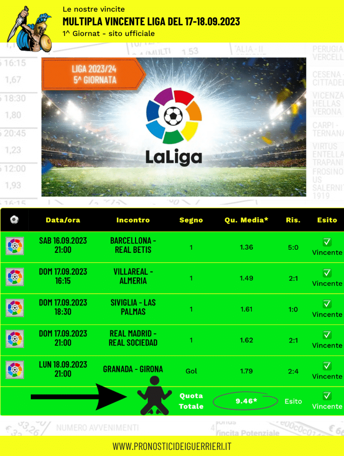 Le immagini che vedi in questa pagina sono l’elenco delle scommesse vincenti dei Guerrieri.