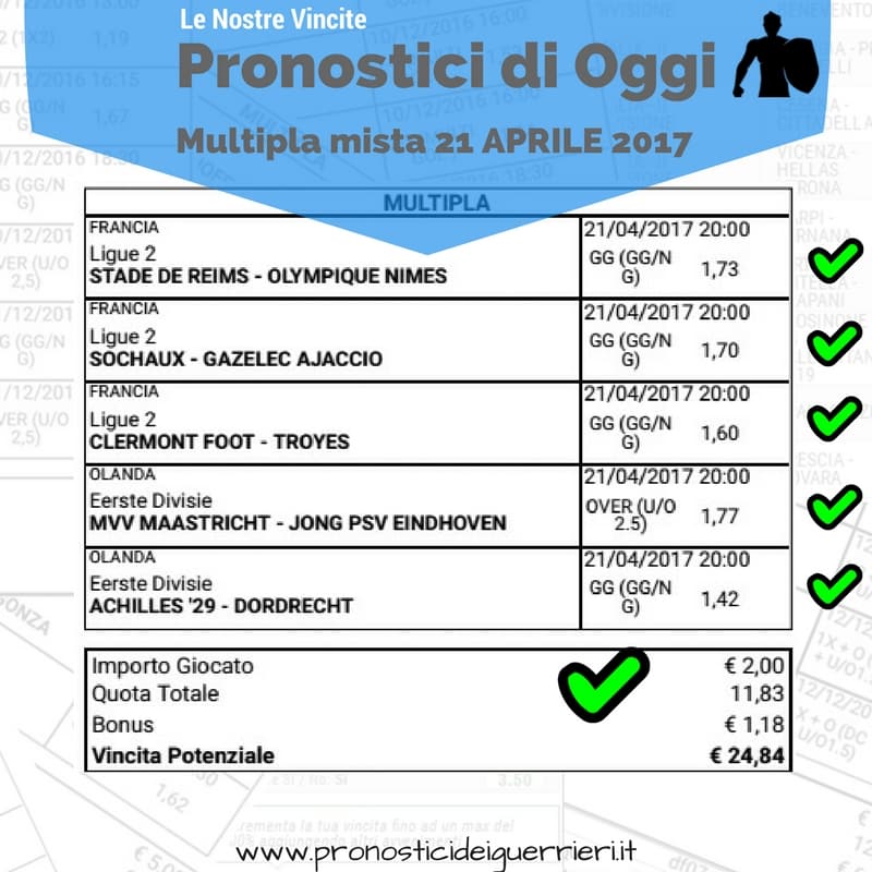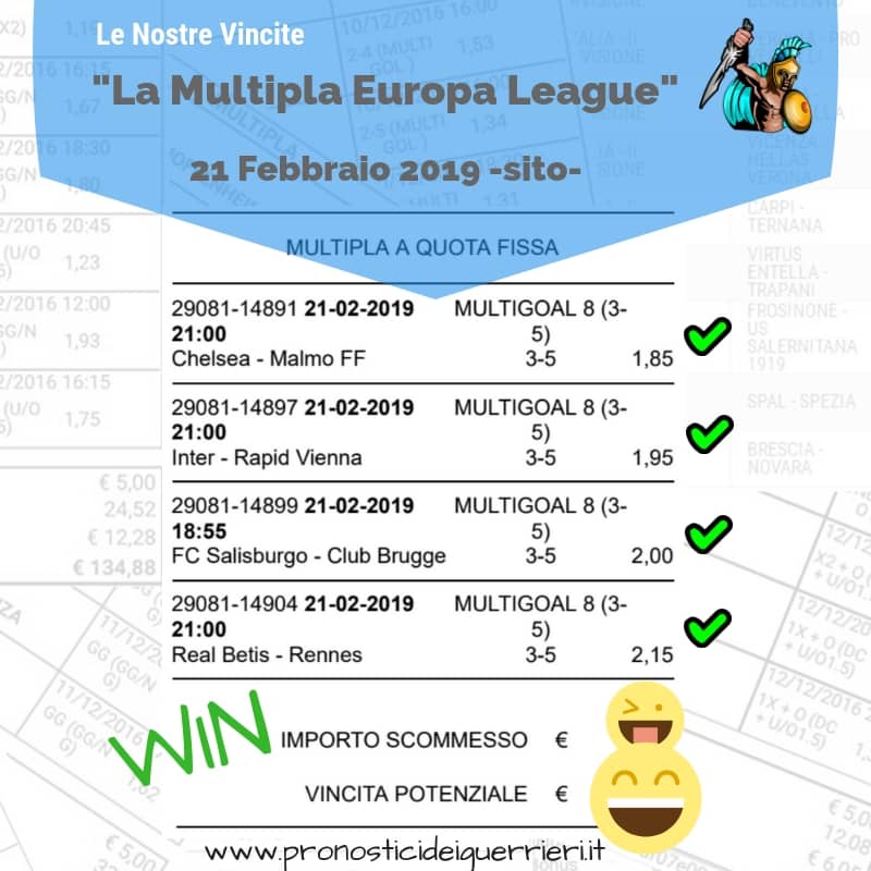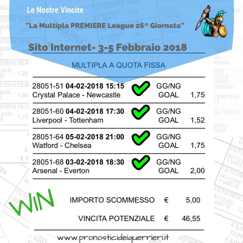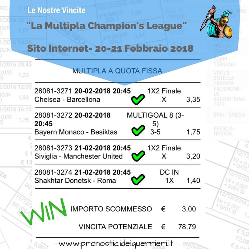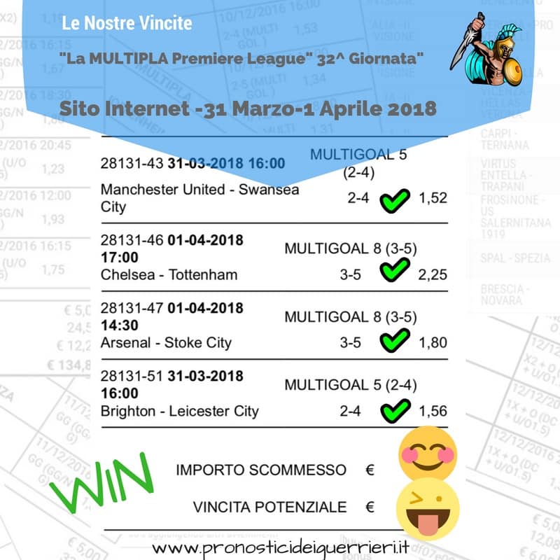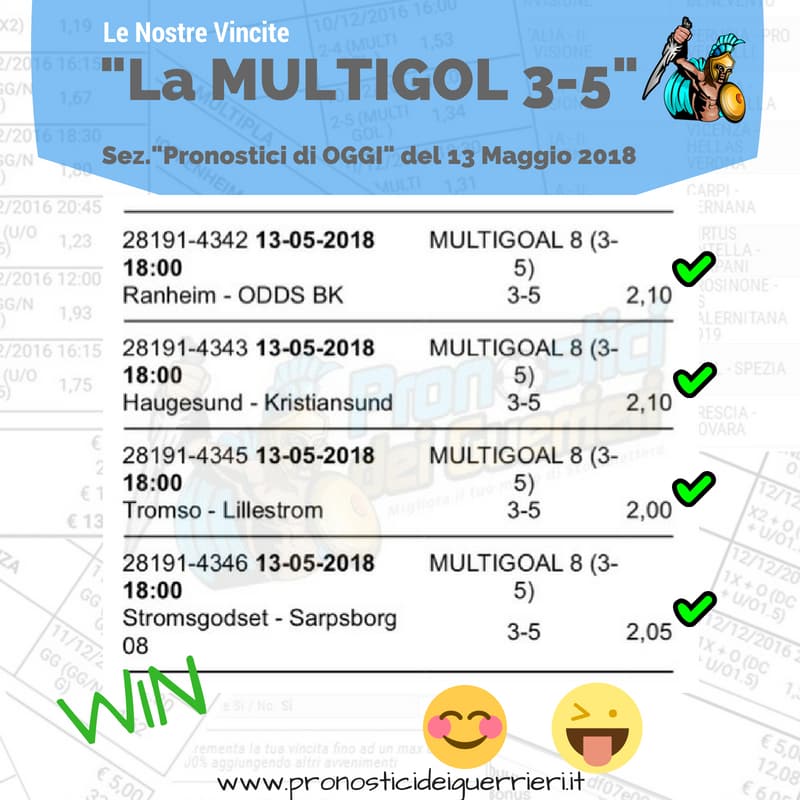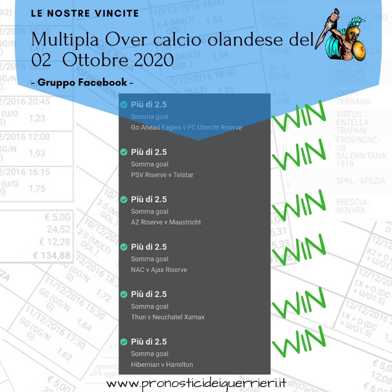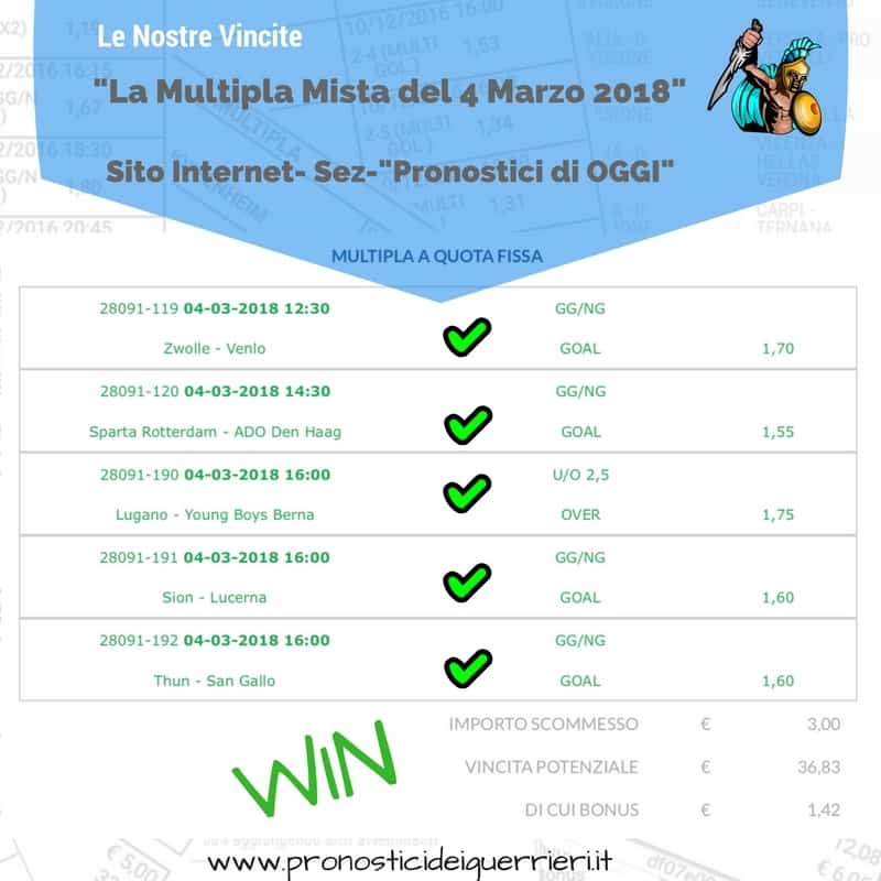 Scommessa multipla VINCENTE La Multigol olandese del 2 marzo 2018 Sito Internet Sez. Pronostici di OGGI