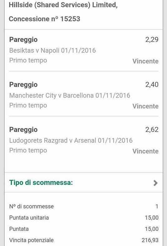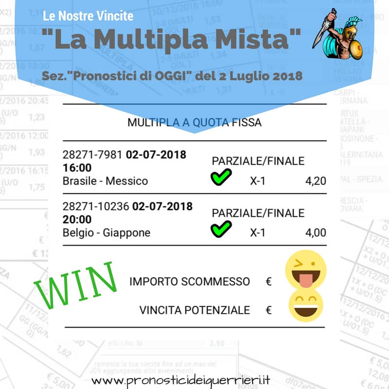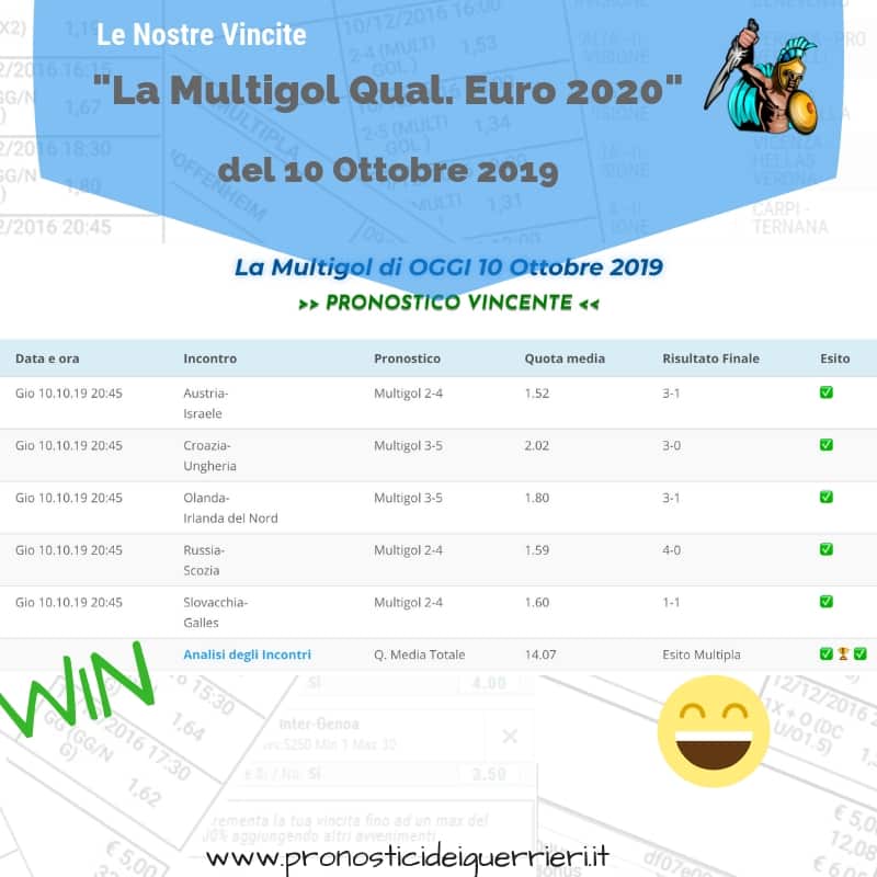 scommessa multipla parziali finali di oggi VINCENTE del 10 ottobre 2018 sito sezione pronostici di oggi