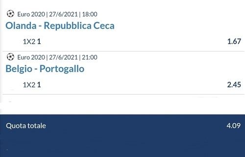 - La Scommessa Multipla degli ottavi di finale su 2 match che si disputeranno il 27 giugno 2021;