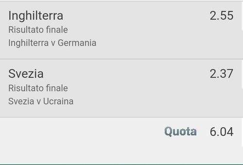 - La Scommessa Multipla degli ottavi di finale su 2 match che si disputeranno il 29 giugno 2021;