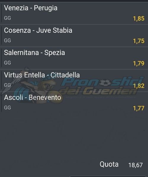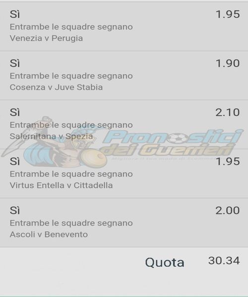 | Ven 31.07.20 21:00 | Entella - Cittadella | GOL | 1.88 | 2:3 | ✅ |