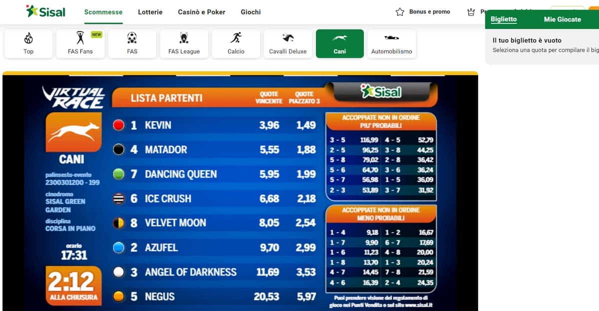 Inoltre, è possibile eseguire scommesse su sport virtuali come quelli che riguardano le corse dei cani, dei cavalli o delle auto.