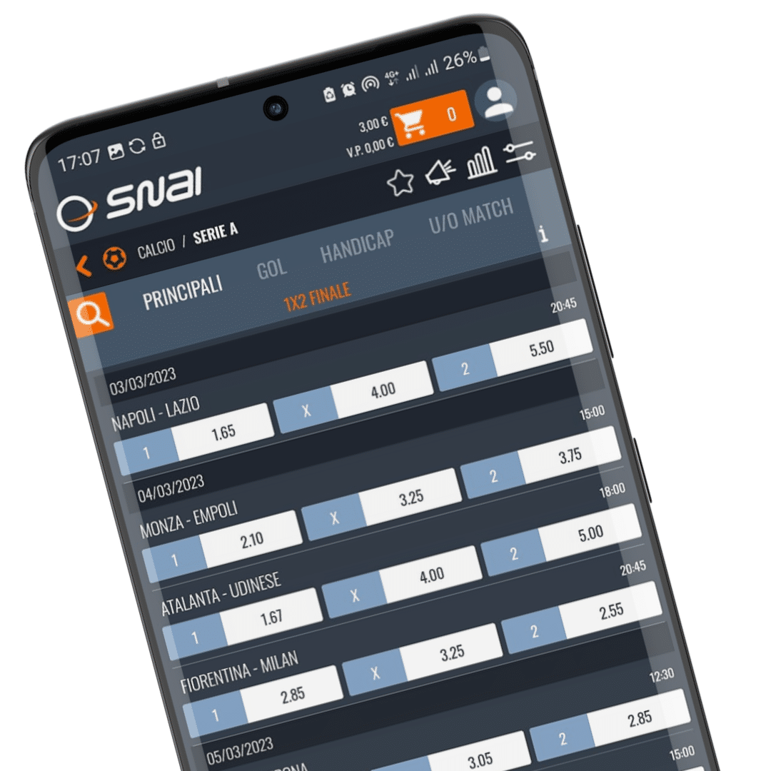 SNAI fornisce un ampio palinsesto sportivo che soddisfa ogni esigenza dei giocatori, con la possibilità di scommettere su un’ampia varietà di eventi sportivi in ogni momento della giornata.