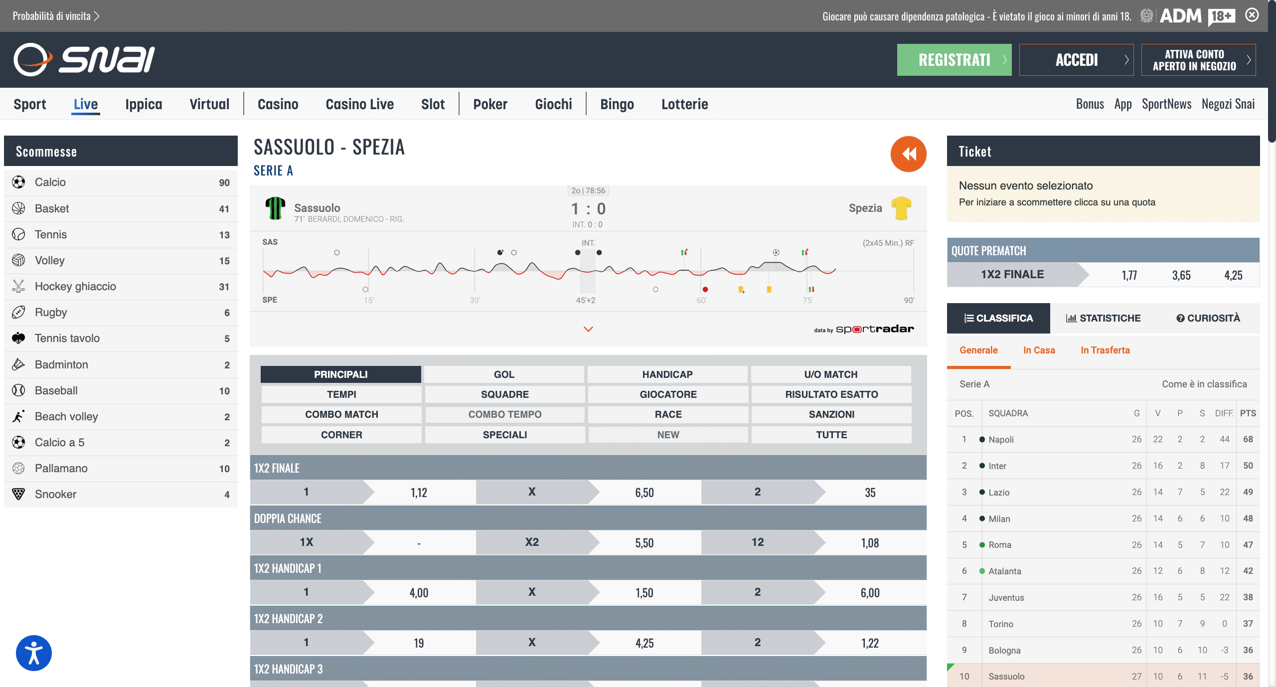 Quali sono le scommesse e i giochi disponibili su SNAI?