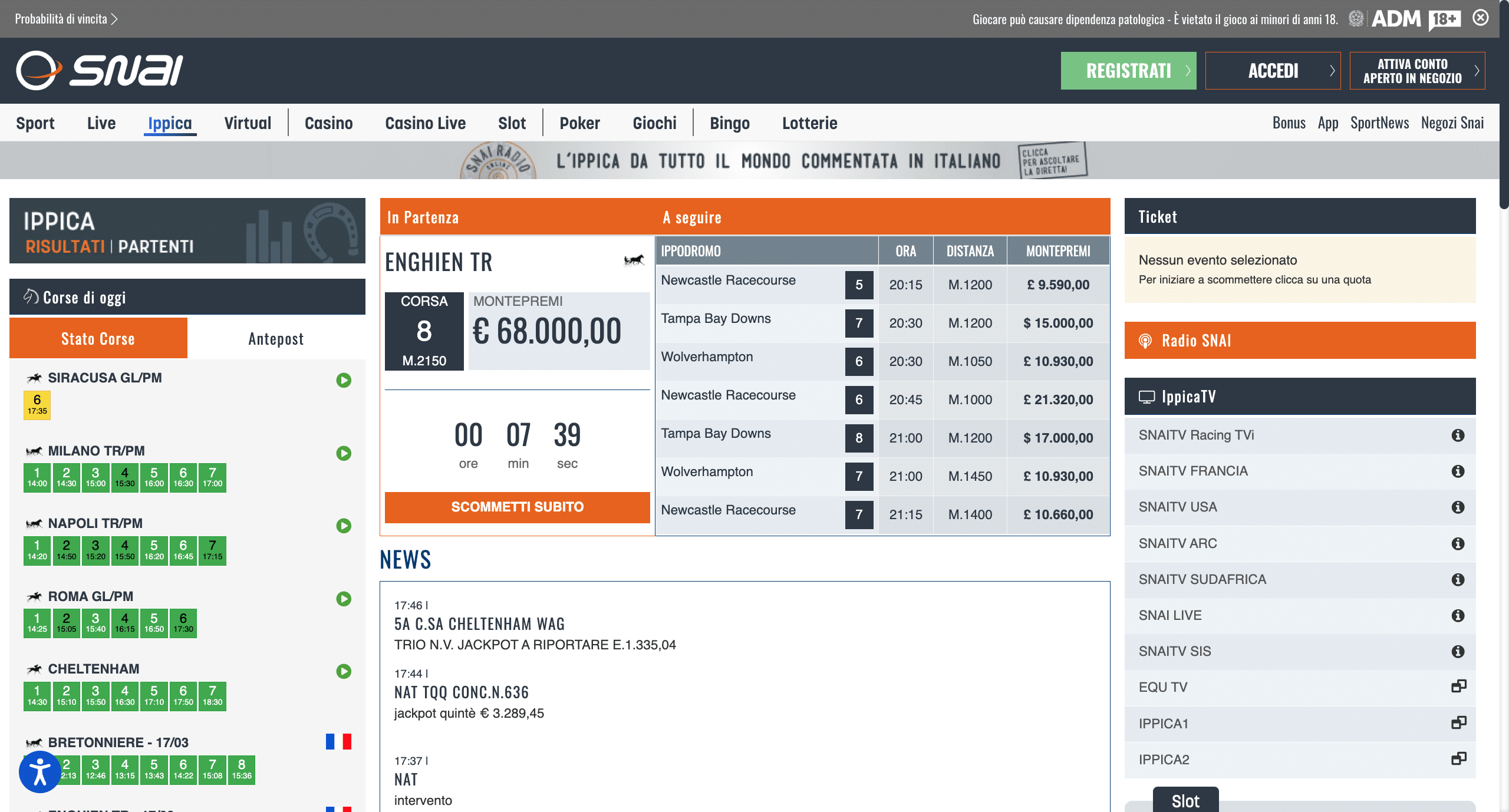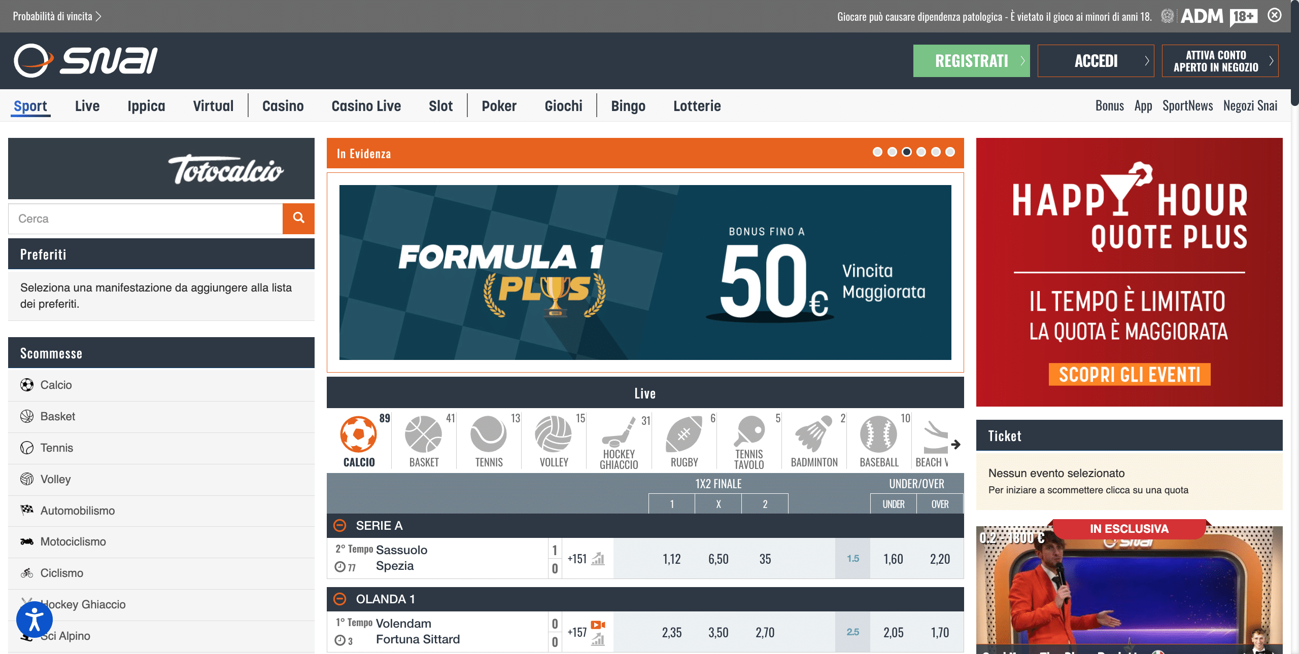 Palinsesto SNAI: Quote, Sport e scommesse disponibili