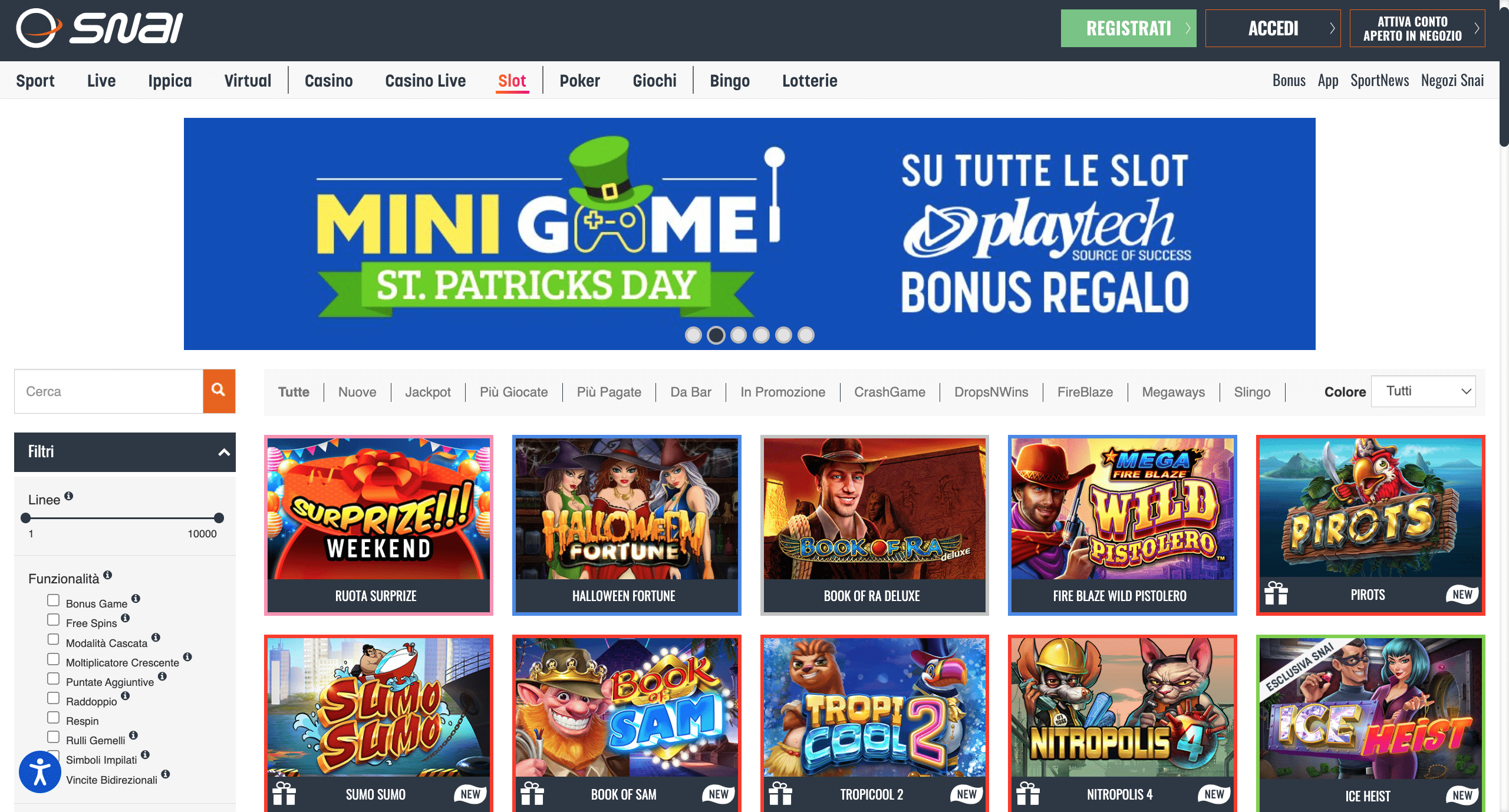 Per gli appassionati di giochi da casinò, SNAI offre una selezione di slot machine online con grafiche accattivanti e giochi emozionanti.